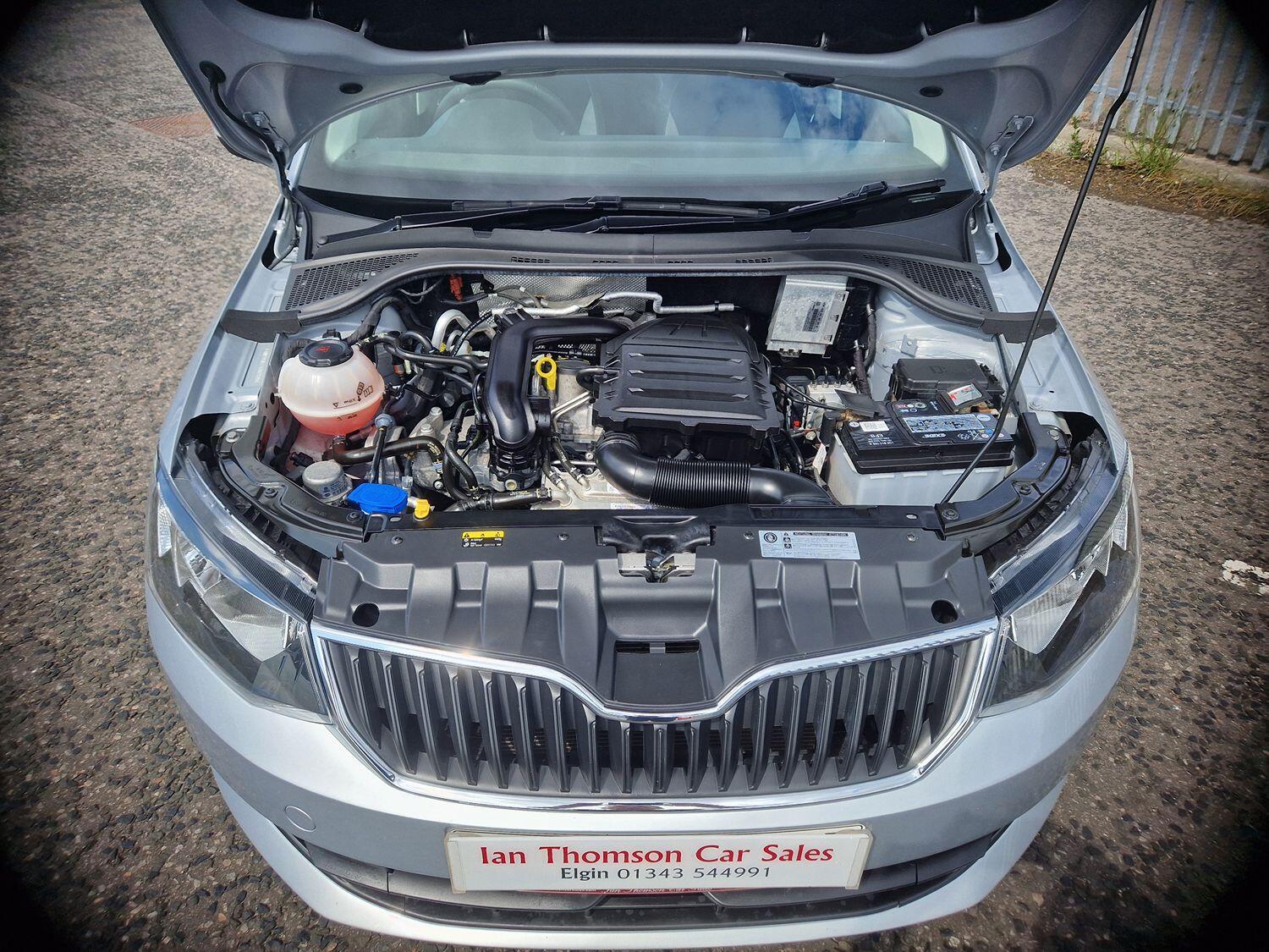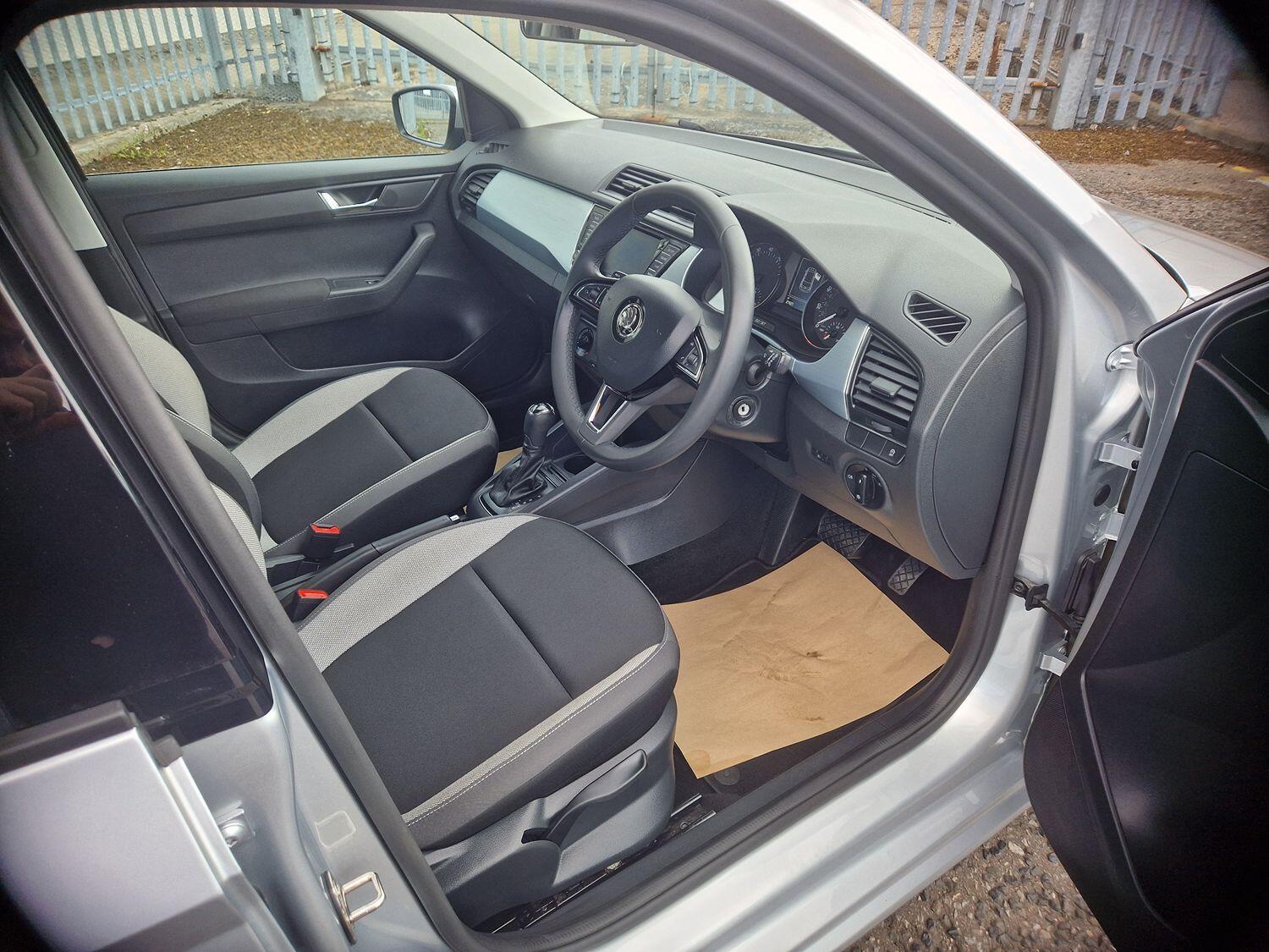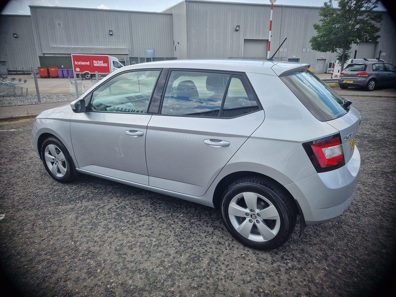 SKODA FABIA 1.0 TSI SE AYTOMATIC HATCHBACK FINISHED IN REFLEX SILVER METALLIC PAINT WORK WITH DARK CLOTH INTERIOR AIR CONDITIONING FACTORY FIT OVER MATS REAR PARKING SENSORS 15" ALLOYS ELECTRIC MIRRORS REMOTE CENTRAL LOCKING WITH TWO KEYS CRUIOSE CONTROL ELECTRIC WINDOWS X4 DEALER PLUS 1 PRIVATE OWNER FULL SERVICE HISTORY FULL SIZE SPARE WHEEL IMMACULATE EXAMPLE WITH LOW LOW MILEAGE